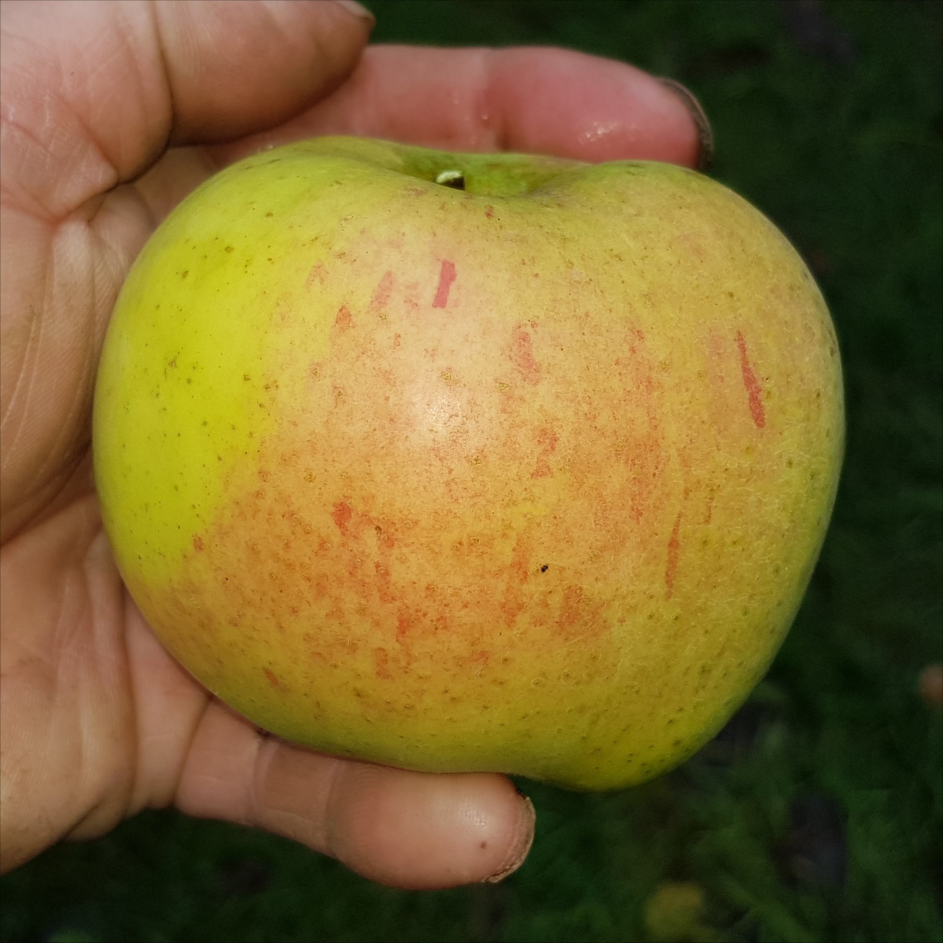 A shiny rich green cooking apple with orange-red flushing, keeps its shape when cooked. Originated in Berkhampstead, Hertfordshire C. 19th. Quite a healthy tree as it is reasonably diease resistant.